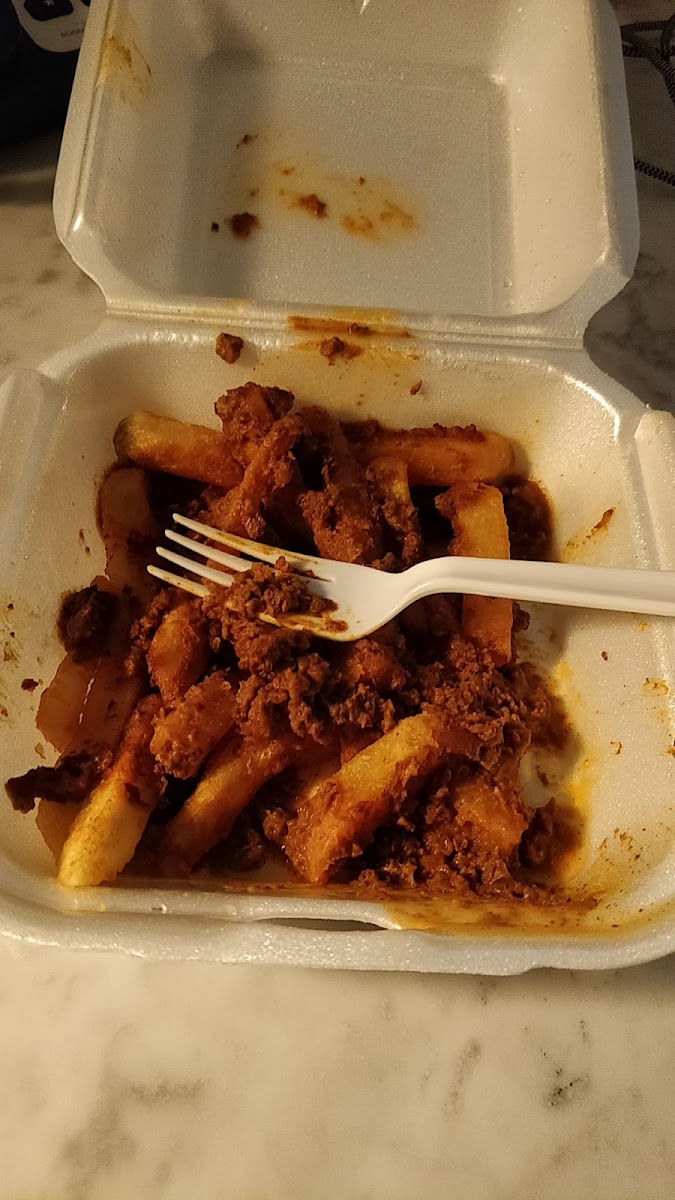 Stopped for chili cheese fries and a Coney for my brother, on a late weekend night. It was busy, but there's plenty of seats to relax while you wait for your food. The portions are large, so you'll leave with a full tummy. I did. Tasty stuff too. The crowd mixed well and was made up of what appeared to be some university students having a night out and some that appeared more like members of a gang. As a newbie to this place, I was grateful when a stranger told me to be careful with wearing my red handkerchief in my back pocket, so as not to appear to be in a gang. So I tucked it in down fully in the pocket and thanked him for the advice. That was a very kind thing for him to look out for me that way. As a old white guy in a country style outfit, I doubt anyone in their right mind would think I might be in a local gang. Regardless, it's nice when locals say something to help visitors enjoy themselves safely. I ordered too much food, but it was all so good. Special shout out for the variation of chilli cheese fries they offer with bacon bits, chilli and cheese. That was spectacular!
